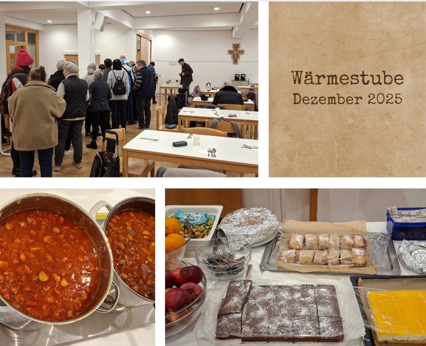 im Pfarrsaal eine halbe Stunde vor Beginn auf die Feier ein.